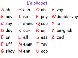 Ay = ɛji before a consonant, aj elsewhere · c = s before i, e or y but k elsewhere · g = ʒ before i, e or y but g elsewhere · i = i ̭ . It is so important to know the french alphabet as it is the . Well, the french alphabet is similar to the english alphabet, but many letters have different sounds than what we are used to hearing. Both languages share the same letters. Let's start with the good news: